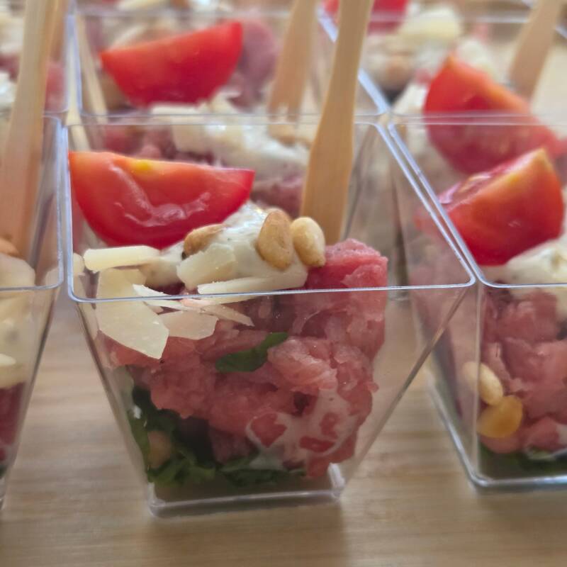 Het aantal hapjes hangt vooral af van de duur van het feestje en of het een borrel of volledige avond betreft.